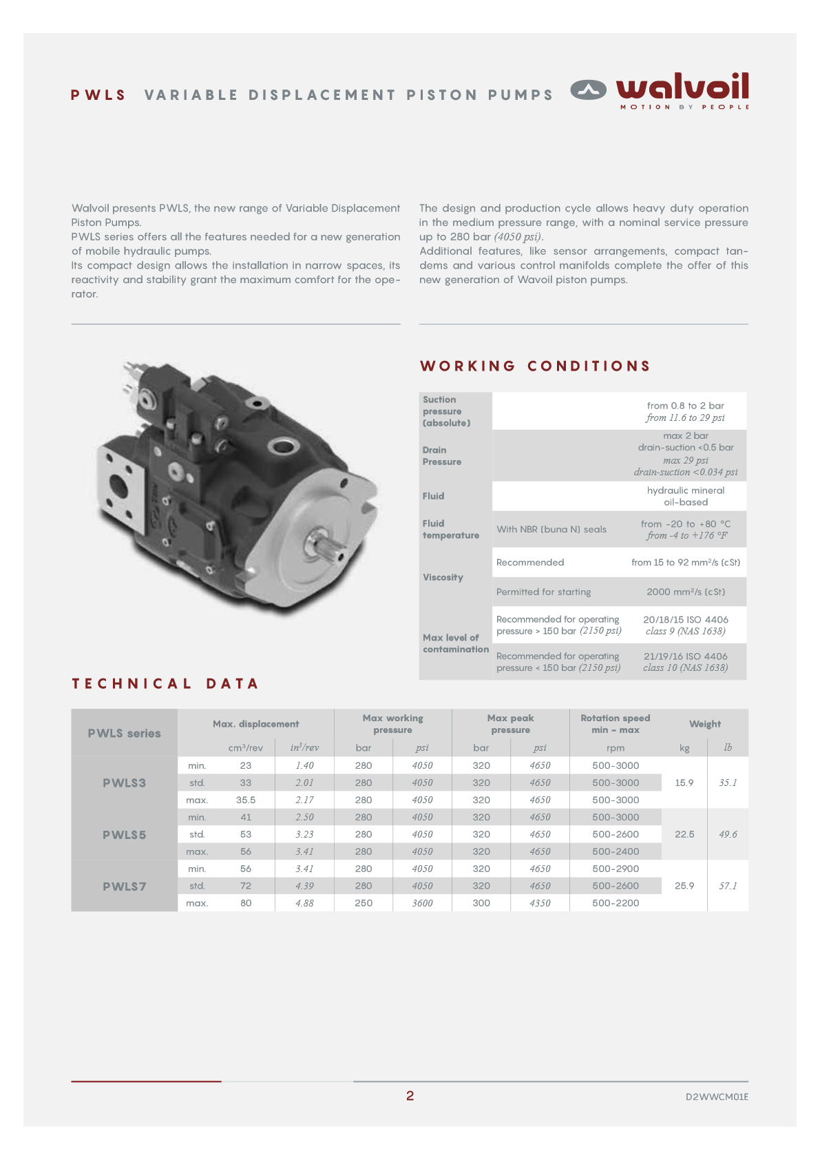 PWLS serisi, yeni nesil mobil hidrolik ekipman pompaları için gereken tüm özellikleri taşır. Kompakt tasarımı, dar alanlara kuruluma olanak tanır, tepkiselliği ve stabilitesi operatöre maksimum konfor sağlar. Tasarım ve üretim döngüsü, 280 bara (4050 psi) kadar çalışma basıncıyla orta basınç aralığında ağır hizmet tipi çalışmaya olanak tanır. Sensör boşlukları, tandemler ve çeşitli kontrol manifoldları gibi ek özellikler. Uygulama alanları, Skid Steer yükleyiciler, Telehander'lar, Ekskavatörler, Vinçler, Forkliftler ...